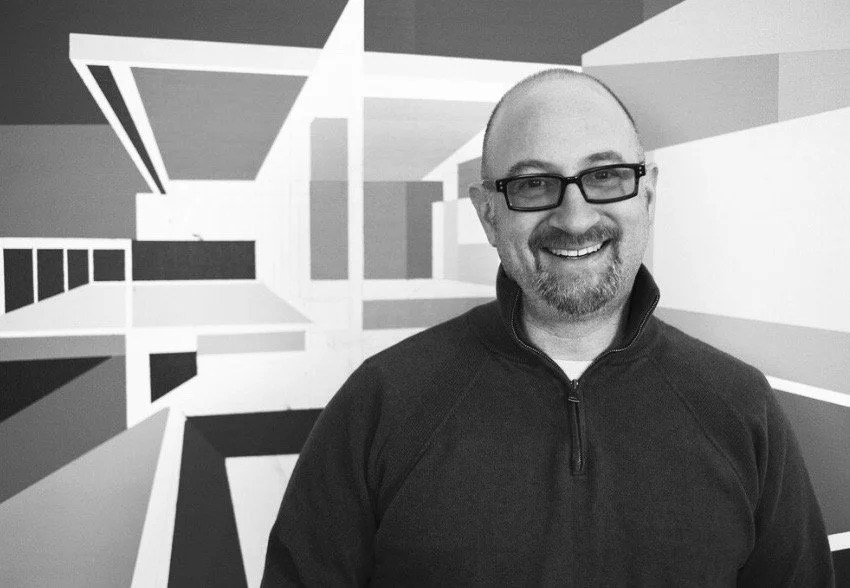 Andy Burgess is a London-born painter and collage artist now residing in Tucson, Arizona. His work is in many major art collections and is frequently exhibited internationally. Burgess is best known for his large-scale paintings of architectural subjects which celebrate modernist and contemporary architecture and explore its relationship to modern art and, in particular, abstract painting. Whether rediscovering lost architectural gems in the “International Style” or reinterpreting classic and famous “Mid-Century Modern” homes, Burgess’s paintings employ an intense palette and bold geometric forms to bring a fresh perspective to the architecture and create emotionally resonant images.