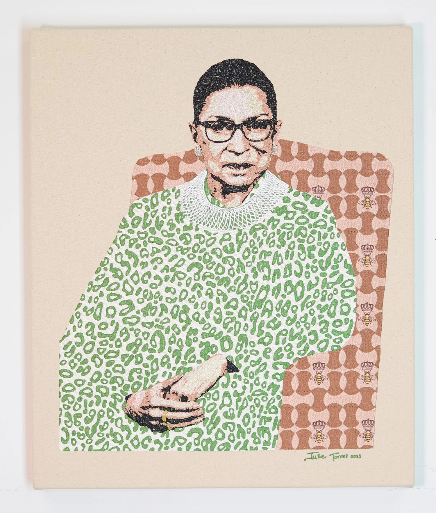 Image 1 of 1 Notorious (Green/Tan) $2,500.00 2023 Embroidery with 525,038 stitches 24 x 20 in. Julie Torres Add To Cart Added! 2023 Embroidery with 525,038 stitches 24 x 20 in. Julie Torres