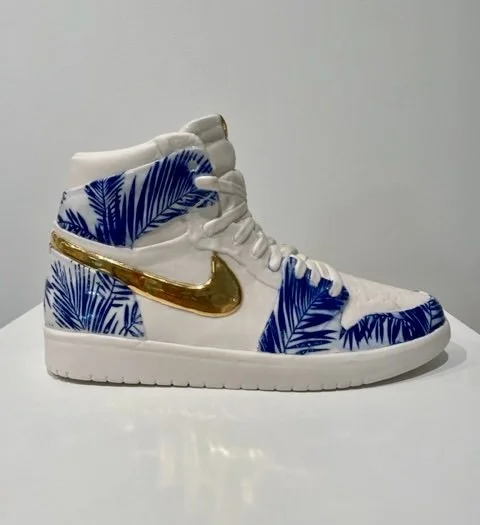 Image 1 of 1 Palms Panel Jordan 1 with gold $2,500.00 2023 Porcelain, cobalt oxide, glaze with gold luster 6.5 x 11 x 4.5 in.Edition 1 of 5 Add To Cart Added! 2023 Porcelain, cobalt oxide, glaze with gold luster 6.5 x 11 x 4.5 in.Edition 1 of 5